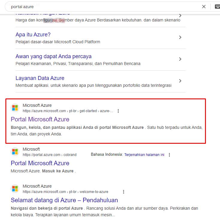 1.Cari Situs Portal Azure Terlebih Dahulu di Google